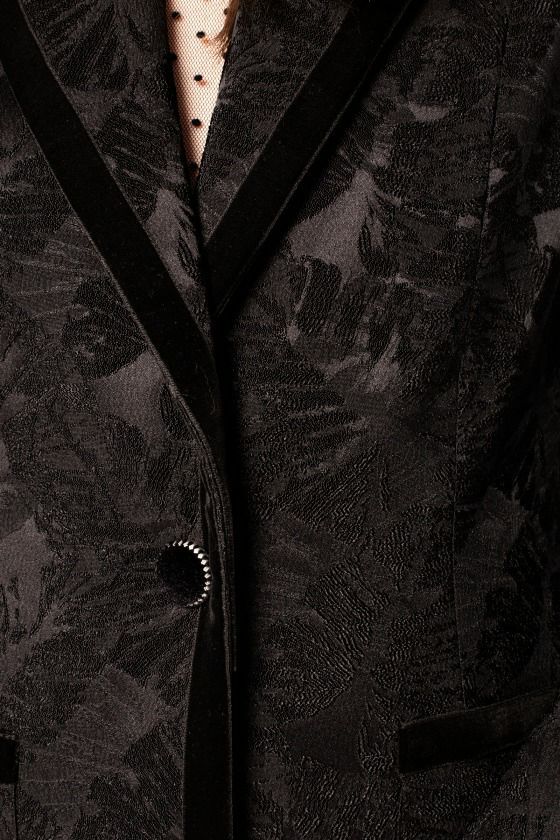 Пиджак жаккардовый черный – идеальный выбор для вашего гардероба! Элегантность ткани, изысканный дизайн и безупречный крой подчеркнут статус и превосходный вкус. Подходит как для деловых встреч, так и для вечерних мероприятий.