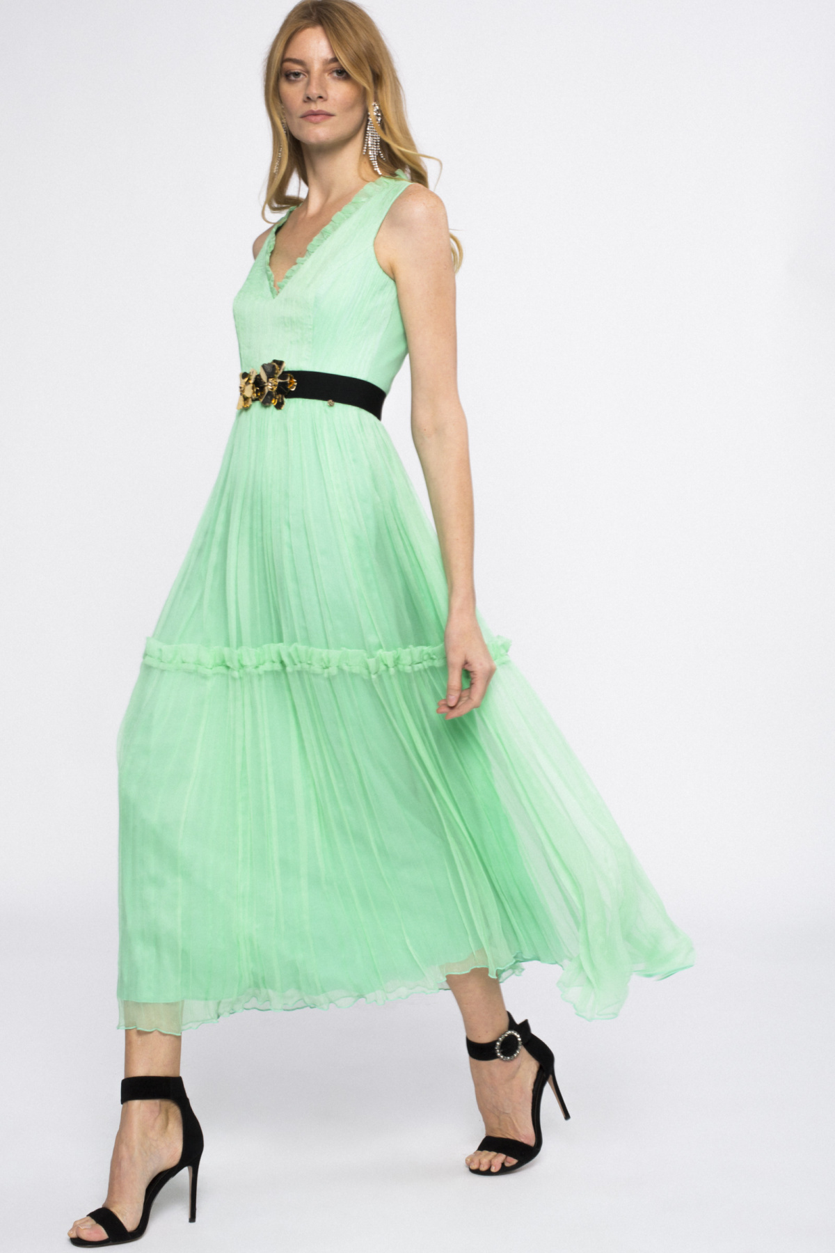 Нежное и элегантное платье подчеркнет вашу природную красоту и станет идеальным выбором для вашего особенного дня. Светящийся оттенок мяты придает образу романтичности и утонченности, а струящаяся ткань создает чарующий силуэт. Стильный крой и изысканные детали делают это изделие настоящим сокровищем любого гардероба.