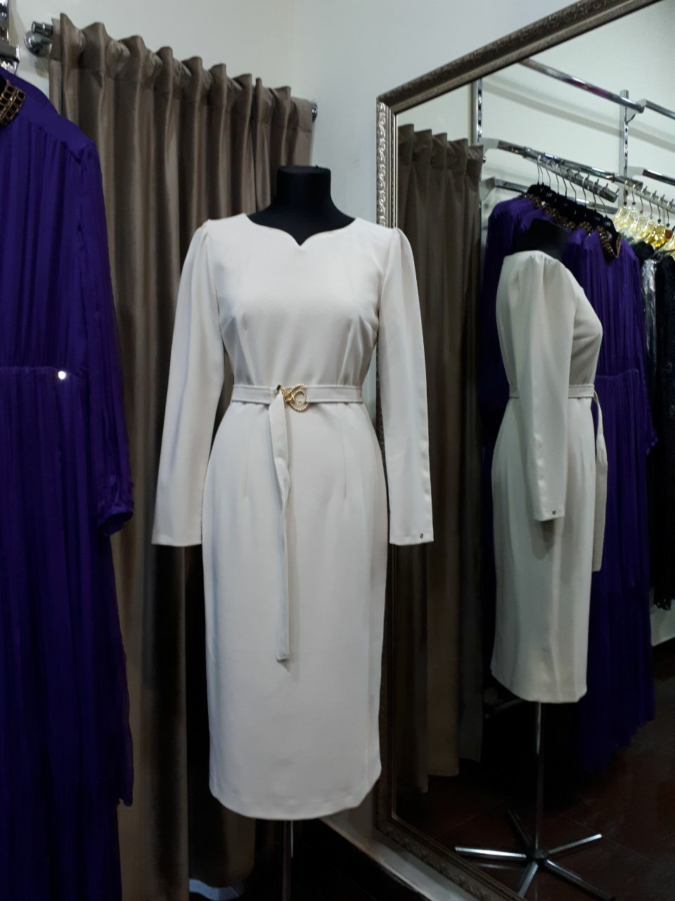 Платье футляр с поясом идеально подчеркивает фигуру, добавляя акцент на талии. Ткань приятная к телу, обеспечивает комфорт при носке. Подходит как для повседневных прогулок, так и для деловых встреч. Удобный крой позволяет сочетать изделие с любимыми аксессуарами и обувью на любой вкус.
