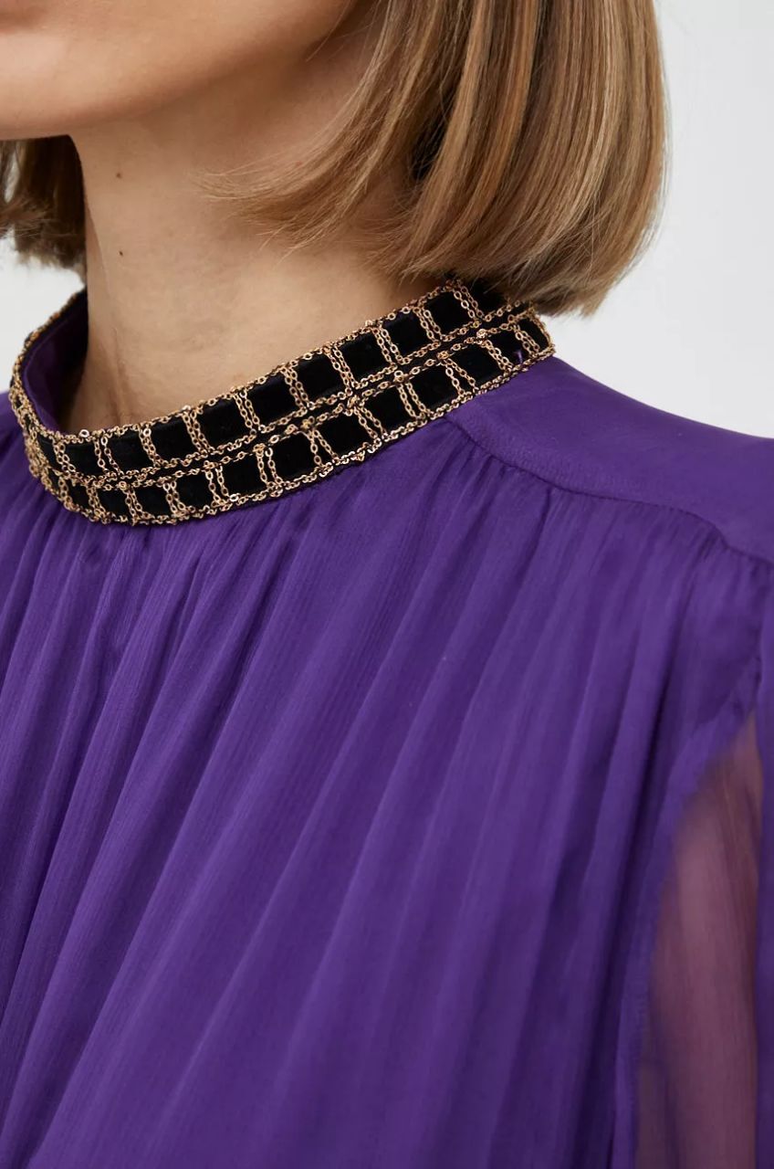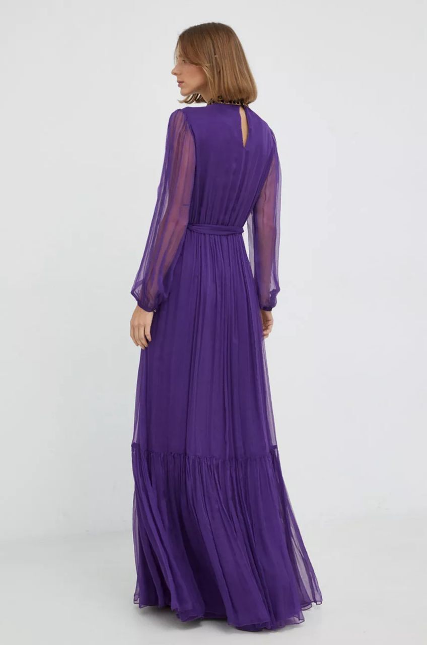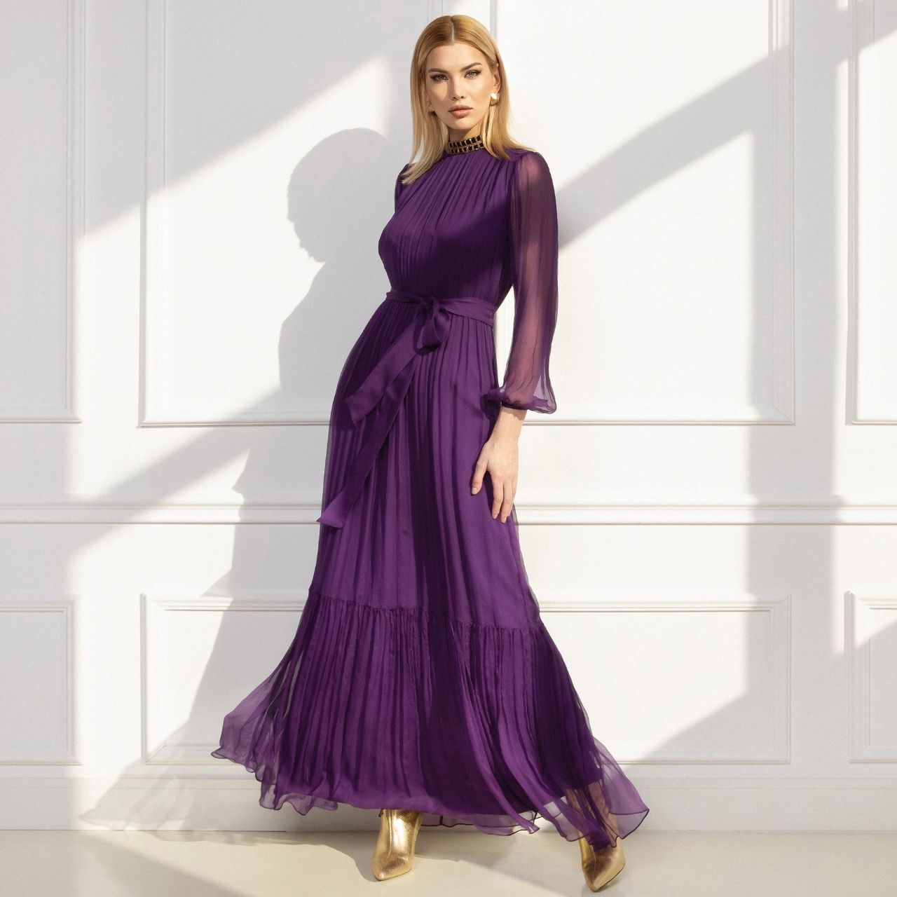 Нежно струится по фигуре, подчеркивая природную красоту владелицы. Глубокий фиолетовый оттенок создает впечатление элегантности и изысканности, притягивает восхищенные взгляды. Прочность и тонкость натурального шелка обеспечат комфорт даже при длительном ношении. Идеально подходит как для вечерних мероприятий, так и для повседневного выхода в свет – это именно то платье, которое станет хитом вашего гардероба!