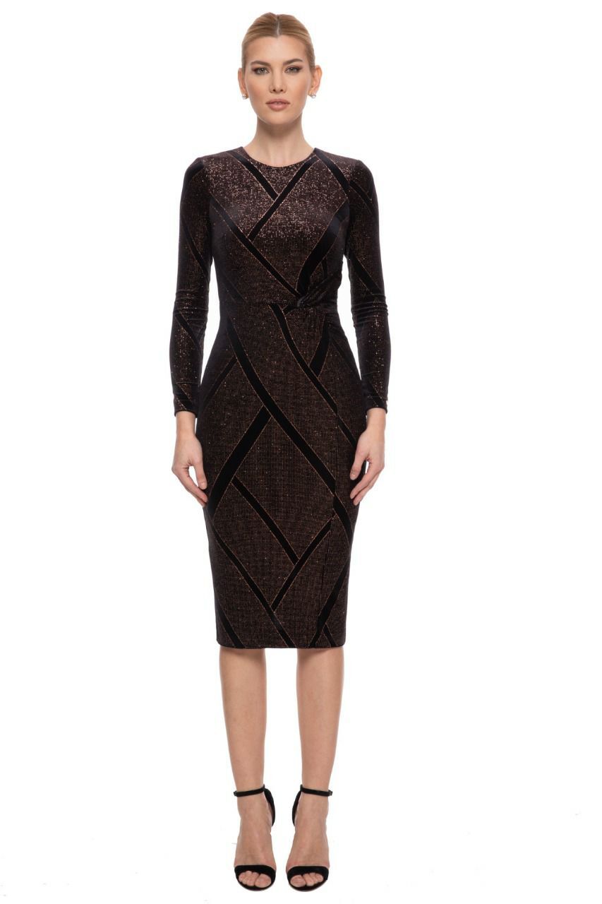 Платье облегающее из стрейч бархатной ткани с блеском. Идеально подходит для вечерних мероприятий — вы будете выглядеть неотразимо!